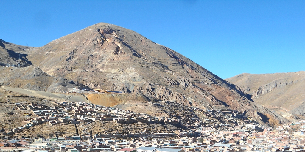 Cerro Posokoni towers over the town of Huanuni, on the eastern slopes of the Andes, in the Bolivian department of Oruro, like an upside-down ice cream cone.